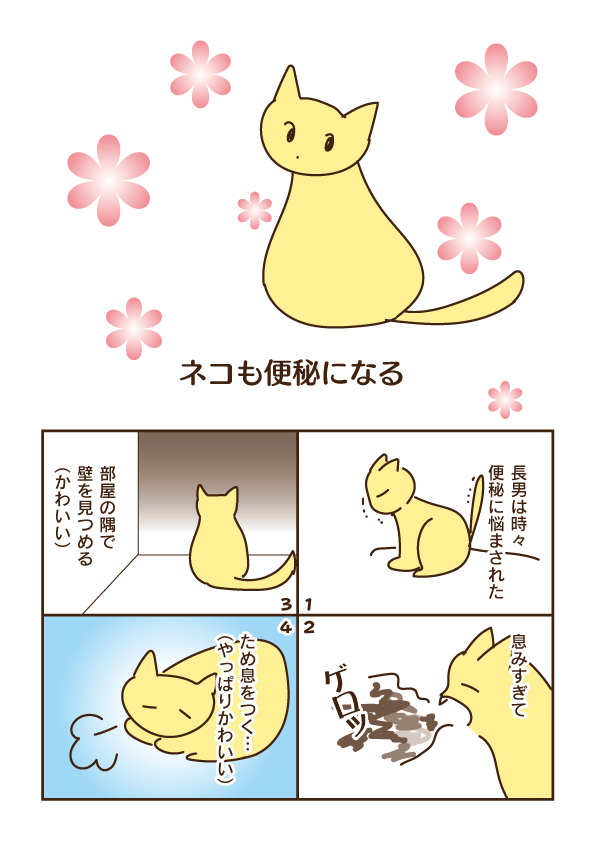 ネコも便秘になるんです。結構憂鬱そうで、ため息まで漏らします。
