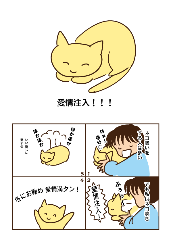 固定ページ お問い合わせはこちらから つまずきだらけの人生 ネコ好き ネコ X Facebook はてブ LINE コピー 2025.10.17 世間では「ネコ吸い」が好きな人も多いらしい。でも私は「ネコ吹き」も好き。 我が家のネコ吹き儀式の流れ: 「愛情注入!」と言い大きく息を吸う。 ネコ様の背中に向けて息をゆっくり吹き付ける。じんわりひろがるイメージで。 ネコ様の背中が温かくなったところで「愛情満タン!」と儀式が終了したことをネコ様に告げる。